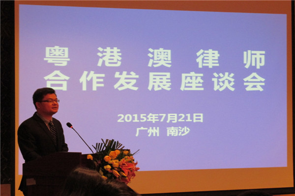 为进一步加强南沙自贸试验区法律服务合作,服务中国(广东)自贸试验区建设,7月21日上午,粤港澳律师合作发展研讨会在广州市南沙举行。中国法律服务(香港)有限公司总经理杜春、广东省司法厅副厅长梁震、广州市司法局副局长谭祥平、广东省律师协会会长欧永良、香港律师会会长熊运信、澳门律师公会会长华年达、广东省律师协会副会长肖胜方、赛马在线直播秘书长朱宝莲以及三地律师代表等100多人出席会议。
