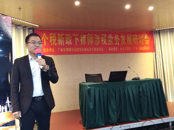 第一位分享嘉宾是广东省律师协会税法专业委员会委员、市律协财税委委员吴拥军律师,吴律师此次分享的主题为《个税法修改要点以及对涉税法律业务的影响》。首先向大家介绍了个税法修订的背景及历程,然后又详细地说明了个税法修订的十大变化。最后向与会律师介绍了个税法修订对涉税法律服务的影响,以及个税方面的经典案例。