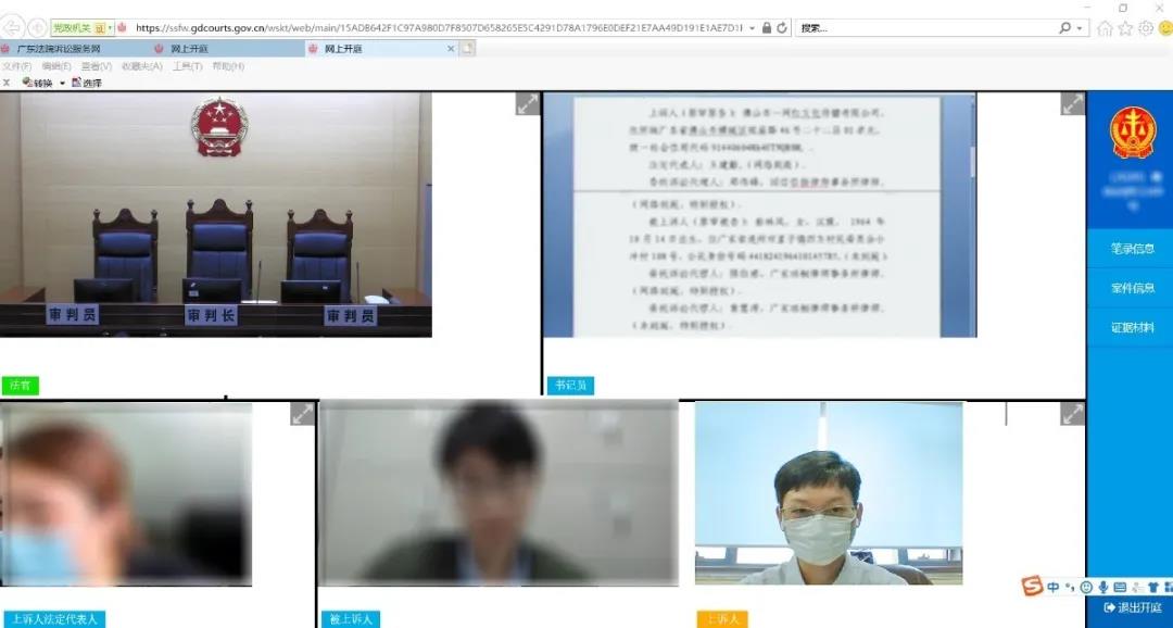疫情期间,我参加佛山中院的一次远程开庭,由于不确定当事人的设备是否满足开庭要求,我特意赶赴当事人住所,协助其完成设备调试,开庭前,法官会核实参与人身份和提醒戴好口罩做好防疫,让人感到暖心,佛山中院实施的这种庭审模式既便捷高效,足不出户完成庭审,非常切合实际。
