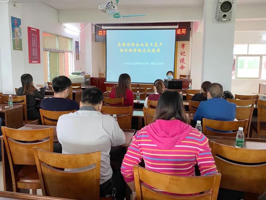 为响应支持白云区司法局支持企业复工复产的号召,3月份,我为三个村居法律顾问单位(白云区江高镇郭塘村、江兴社区、松岗社区)辖区内的企业开展了3场关于《疫情时期企业复工复产相关规定与适用》的法律讲座,对复工复产的相关规定和政策进行了解读。希望可以用我的专业知识为企业复工复产保驾护航,共度时艰。