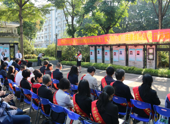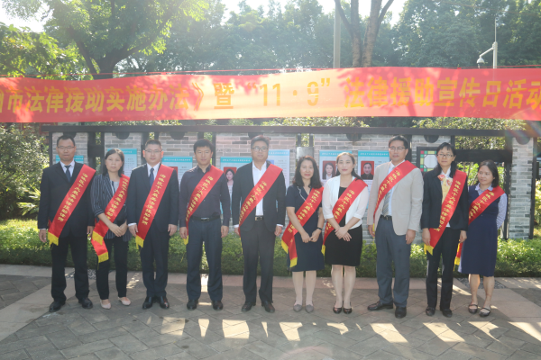 2019年是《广东省法律援助条例》颁布实施20周年,也是海珠区设立法律援助机构20周年。11月9日是广州市法律援助宣传日,在这天,海珠区文明办、海珠区司法局等单位联合评出了海珠区“十大最美法律援助律师”,并在海珠区法治文化主题公园内举办了颁奖命名仪式。市律协会长邢益强,市司法局法援处主任蒋泓,海珠区委宣传部副部长魏巍,海珠区司法局党组书记朱俊学、区局政工办主任林建国,海珠区律工委主任黄添顺等出席活动。在公园的法治文化长廊中,也展示了“十大最美法律援助律师”的先进事迹,供市民阅览。