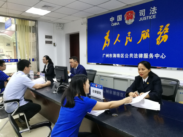 据悉,海珠区已纵向构建了区、街道、社区三级联动法律援助网络,横向设立妇联、残联、侨联等法律援助工作站,建成区级法律援助机构1个、街道法律援助工作站18个、社区法律援助点265个,真正打通了服务群众“最后一公里”,形成“十分钟法律援助圈。