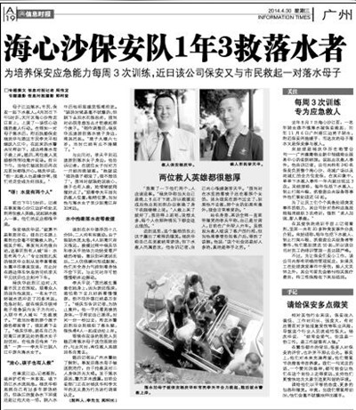 《信息时报》2014年4月30日A19版关于李天平跃江救人的报道