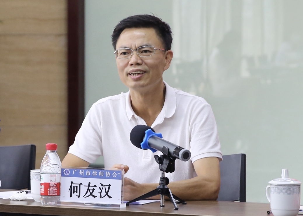 出席座谈会的有广州市司法局党委委员、副局长、广州市律师行业党委书记何友汉,广州市律师行业党委专职副书记龙晓林,市律协顾问王亚和、陈舒、章震亚、易民胜、郭学进、王晓华、庄伟燕、张平,第九届副会长黄建水、官选芸,第十届会长黄山,总监事杨年峰以及副会长、副总监事。会议由邓传远副会长主持。
