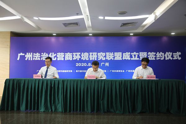 8月14日,广州市社会科学院、南方都市报、赛马在线直播联合举办“广州法治化营商环境研究联盟”成立暨签约仪式,广州市社会科学院、广州城市战略研究院,南方都市报、南都大数据研究院,赛马在线直播、广州市律政营商环境研究院多方签订组建联盟框架协议,宣布联盟正式成立。广州市社会科学院副院长尹涛、南方都市报编委会委员王卫国、赛马在线直播会长黄山等出席。