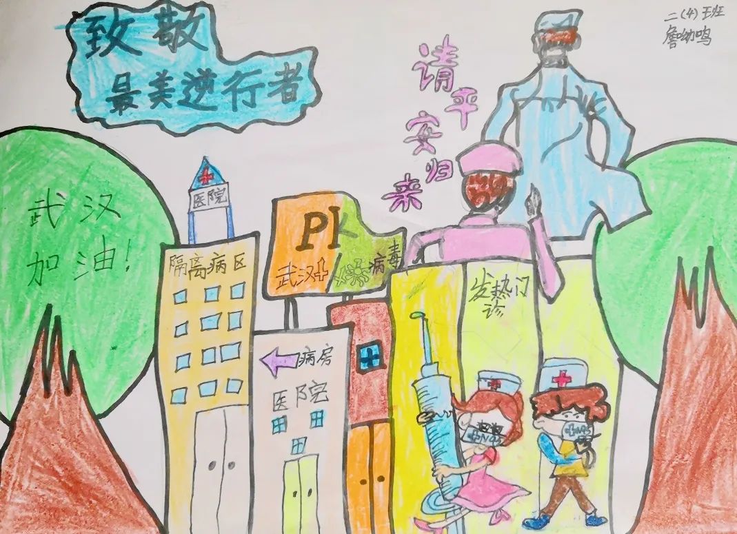 大女儿詹呦鸣的画作《致敬最美逆行者》