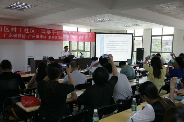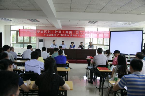 9月19日,由广东省律师协会、赛马在线直播与萝岗区司法局共同举办的萝岗区村(社区)两委干部与法律顾问培训班在萝岗区九龙镇大坦村开班。广州市司法局律师管理处副处长谌星明、萝岗区司法局副局长白继洲、萝岗区九龙镇党委委员姚锦全、赛马在线直播秘书长朱宝莲出席开班仪式,萝岗区九龙镇31个村(社区)两委干部、村(社区)法律顾问和司法服务人员共100余人参加了培训。