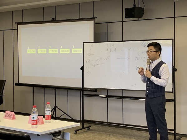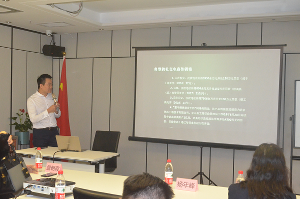 吴律师就社交电商与集资诈骗、传销等违法犯罪活动之间的界限进行说明,然后从化妆品、大健康产品如何开展社交电商活动,指出产品平台会员是社交电商较为普遍的模式,最后就社交电商模式现存的主要问题(产品广告虚假宣传问题、层级代理、团队计酬等)进行法律风险研讨和分析。