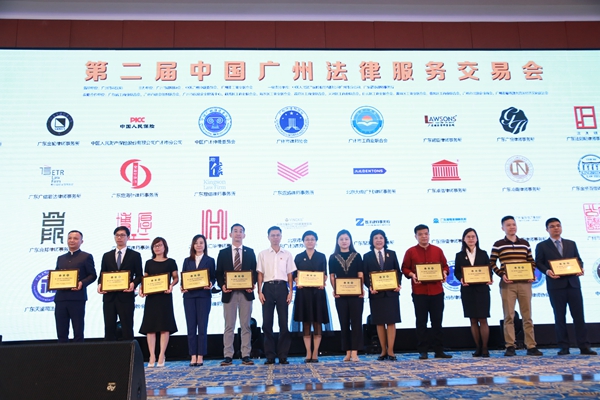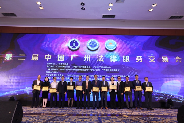 本次“法交会”得到了多个部门和单位的大力支持。开幕式上,廖荣辉局长、陈立副主席、邢益强会长向43家支持单位授予牌匾,感谢各单位对第二届中国广州法律服务交易会从不同层面提供了支持和帮助。