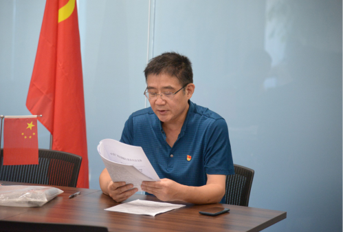 在鲜红的党旗面前,党员同志统一佩戴闪光的党徽,庄严地举起右拳,在官选斌同志的带领下重温入党誓词,铿锵有力地表达为党的事业奋斗终身的决心。官选斌同志强调:党员同志要做到思想自觉、政治自觉、行动自觉,结合实际工作将政治站位放在工作首位。增强“四个意识”,坚定“四个自信”,做到“两个维护”,时刻牢记初心和使命。