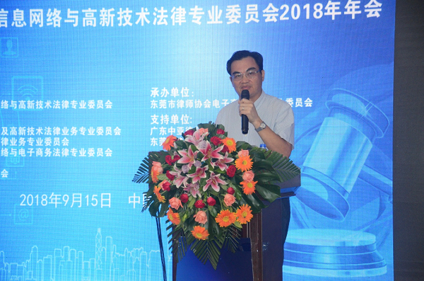 广东省律协副会长叶乃锋、东莞市律协会长陈锡康及副会长张社清、全国律协信息委副主任蔡海宁、广东省律协信息委主任罗振辉、广州市律协互联网及高新委主任詹朝霞、东莞市律协电商委主任郭丰出席研讨会。