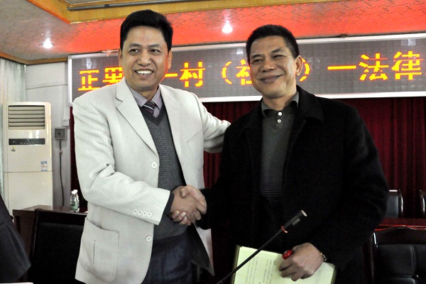 签约后村委代表与律师握手