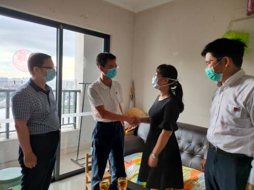 市司法局党委委员、副局长、市律师行业党委书记何友汉,市司法局律师工作管理处处长、市律师行业党委副书记、纪委书记桂锦波连同北京大成(广州)律师事务所党委书记卢跃峰来到困难党员住处,详细询问了其身体状况和家庭生活情况,表达了组织的关心关爱。同时,了解北京大成(广州)律师事务所复工复产和党建工作情况,充分肯定律师所设立“大成爱心基金”帮扶困难律师的举措,彰显大所责任担当。