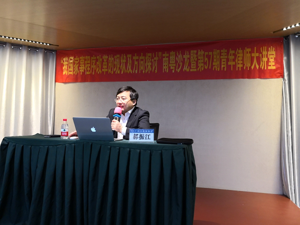 本次讲座邀请河南大学教授、博士生导师以及西南政法大学法学博士郝振江担任主讲嘉宾。市律协婚姻委主任李小非、副主任陈红、朱又又、市律协青工委副主任黎志凌及近60名广州律师参与了讲座。本次活动由婚姻委主任李小非律师主持。