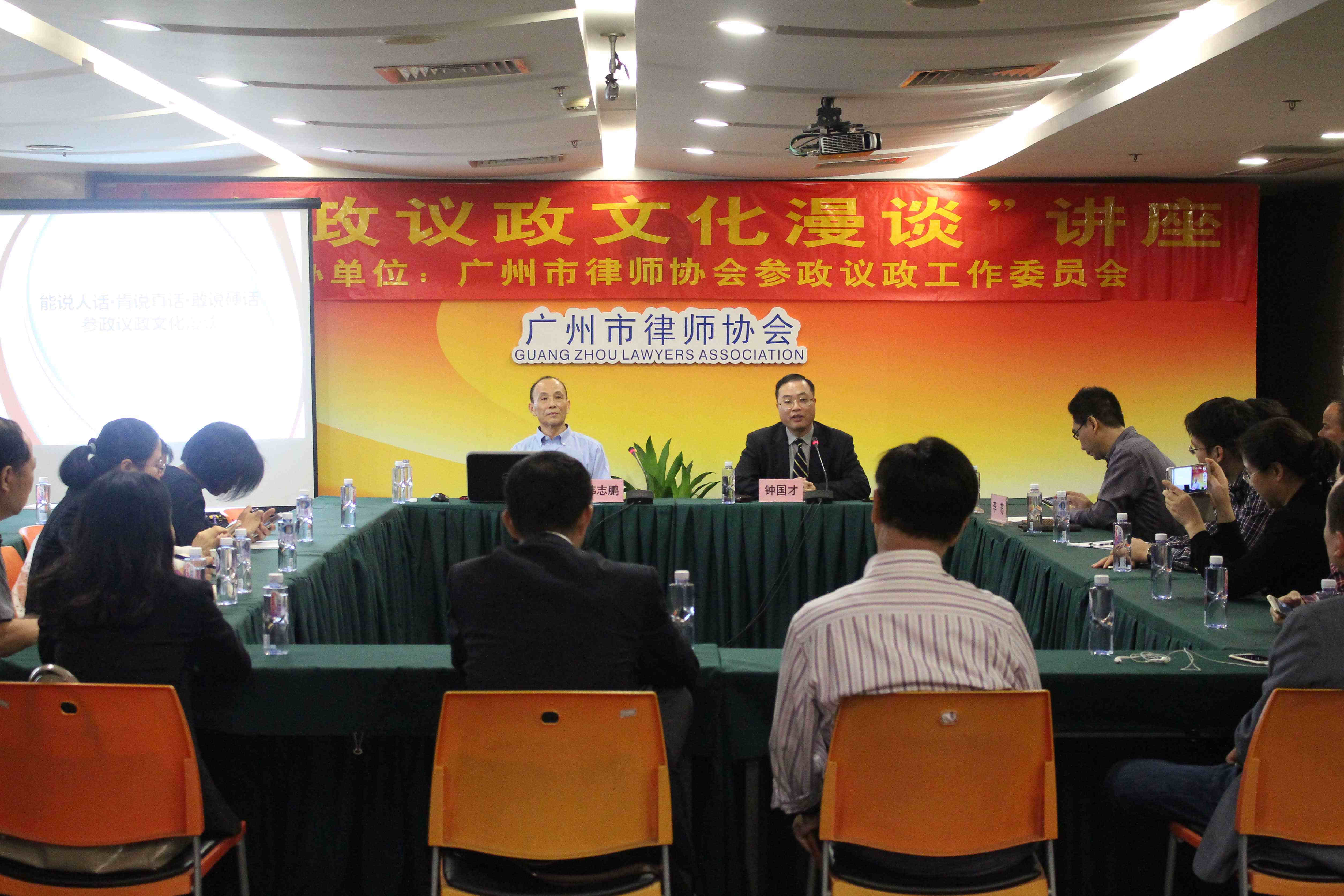 为进一步调动我市律师参政议政热情,提高参政议政能力,11月26日下午,市律协参政议政工作委员会邀请政协第十二届广州市委员会委员韩志鹏先生在市律协多功能会议室举行“参政议政文化漫谈”讲座。讲座由参政议政工作委员会主任钟国才主持。