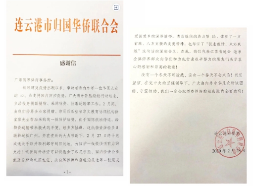 ▲江苏省连云港市侨联向广东博厚律师事务所致以感谢。