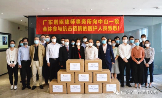 ▲广东诺臣律师事务所向中山大学附属第一医院捐赠N95口罩。