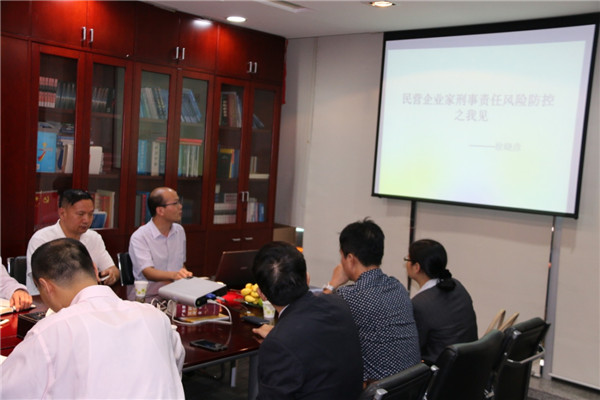 刑控委委员徐晓彦律师作了题为《民营企业家刑事责任风险防控之我见》的主题发言,引起了与会律师的强烈共鸣。各委员就民营企业在设立、经营公司过程中所存在的刑事责任风险展开了热烈的讨论,并结合各自的执业经验就如何预防相关刑事责任风险提出了切实的意见与建议。