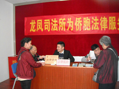 2014年3月13日上午,穗恒律师所参加由海珠区龙凤街侨联与龙凤街司法所在富力社区文化活动室联合开展的“为侨服务,法律援助进社区”活动。龙凤街18位侨胞、侨眷参加了此项活动。穗恒律师所律师为归侨侨眷提供婚姻、财产、医疗等方面的法律咨询和援助,引导归侨侨眷规范合理地运用法律武器维护自身合法权益。