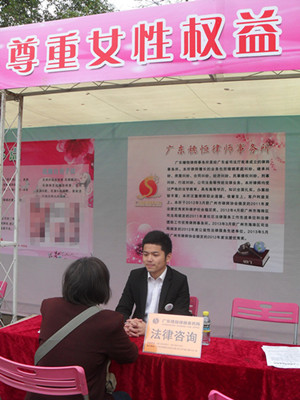 2014年 3月5日,穗恒律师所受邀参加由海珠区妇儿工委、海珠区妇联在大元帅府广场联合举办主题为“三八节,我们一起趁墟”的“三八”国际劳动妇女节大型社区活动。市妇联副主席张鸣,区委常委、区委宣传部部长刘晋生,副区长、区妇儿工委主任江帆,区妇儿工委各成员单位负责同志出席活动。