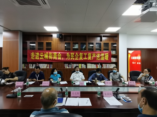 紧接着进入主题座谈会环节,云城街商会朱润成会长详细介绍了白云区云城街汇创意产业园的具体情况,并阐述了民营企业在疫情期间遇到的影响复工复产的因素。