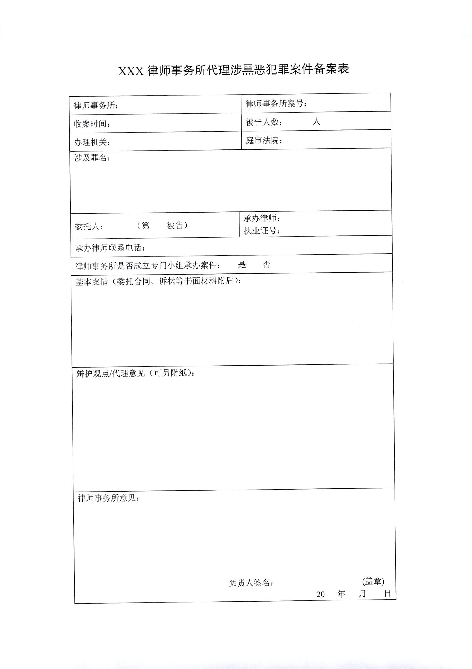 【律所】广东XXX律师事务所代理涉黑恶犯罪案件备案表