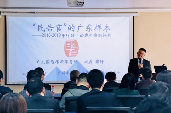 在第二部分,周磊律师详细介绍了广东地区行政诉讼的现状和特点。其指出,一个地区的行政机关败诉率很大程度上反映当地的法治水平,也会顺应当地的社会经济发展趋势,这对于律师来说既是机遇、也更是挑战。之后,周磊律师在第三部分中分享其团队承办的2018-2019年的十大典型案例,结合行政诉讼法在个案中的具体适用和裁判要旨等问题,与在场嘉宾进行了热烈交流互动。在第四部分“行政应诉的法律服务指引”中,周磊律师结合多年来的执业经验,将一个完整的行政诉讼流程拆分为若干个独立的部分,并就每一部分中的要点、难点问题,提出了自己的建议。